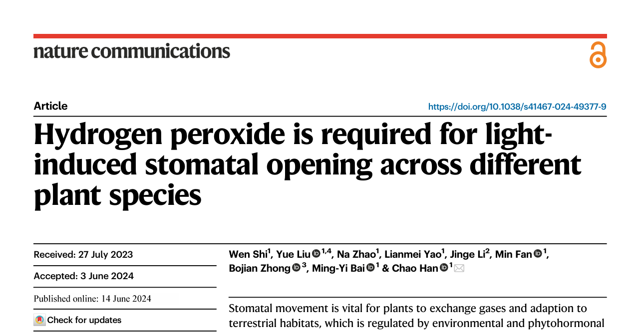 6月14日,山东大学生命科学学院白明义/韩超团队在Nature Communications发表了题为“Hydrogen peroxide is required for light-induced stomatal opening across different plant species”的研究论文,揭示了在正常生长条件下,植物保卫细胞特异积累的过氧化氢对气孔见光开放起着关键调控作用,并证实这一现象在多种维管植物中保守存在。